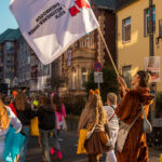 Über viele Jahre hinweg gehörte die Teilnahme am Rodenkirchener Karnevalsumzug fest zur Jahresplanung der Messdiener:innen. Doch irgendwann schlief diese feste Tradition ein. Grund genug, diese Aktion wieder fest ins Programm aufzunehmen, dachte sich die Leiterrunde, und begann schon im letzten Jahr mit der Vorbereitung. Das Thema wurde festgelegt, die Gestaltung ausgearbeitet und Kamelle besorgt. Bis endlich der große Tag kam: Nach vielen Jahren der Abwesenheit folgte am Fastnachts-Sonntag die erneute Teilnahme am Umzug. Zahlreiche Messdiener:innen, sowie deren Freund:innen tauchten kostümiert als die unterschiedlichsten Tiere der Arche Noah auf. Passend dazu wurde das Schiff auf Platten gemalt, die am Quad, welches als Kamellewagen fungierte, befestigt wurden. Am Ende sprechen die Bilder für sich. Und schon jetzt dürfte klar sein, dass es auch eine Teilnahme im nächsten Jahr wieder geben wird.